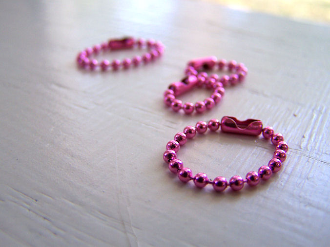 Once you've clipped your pieces of ball chain you just take your clasps and turn them into rounds. Viola simple functional stitch markers! Now you can have twice as many WIPs on the needles.